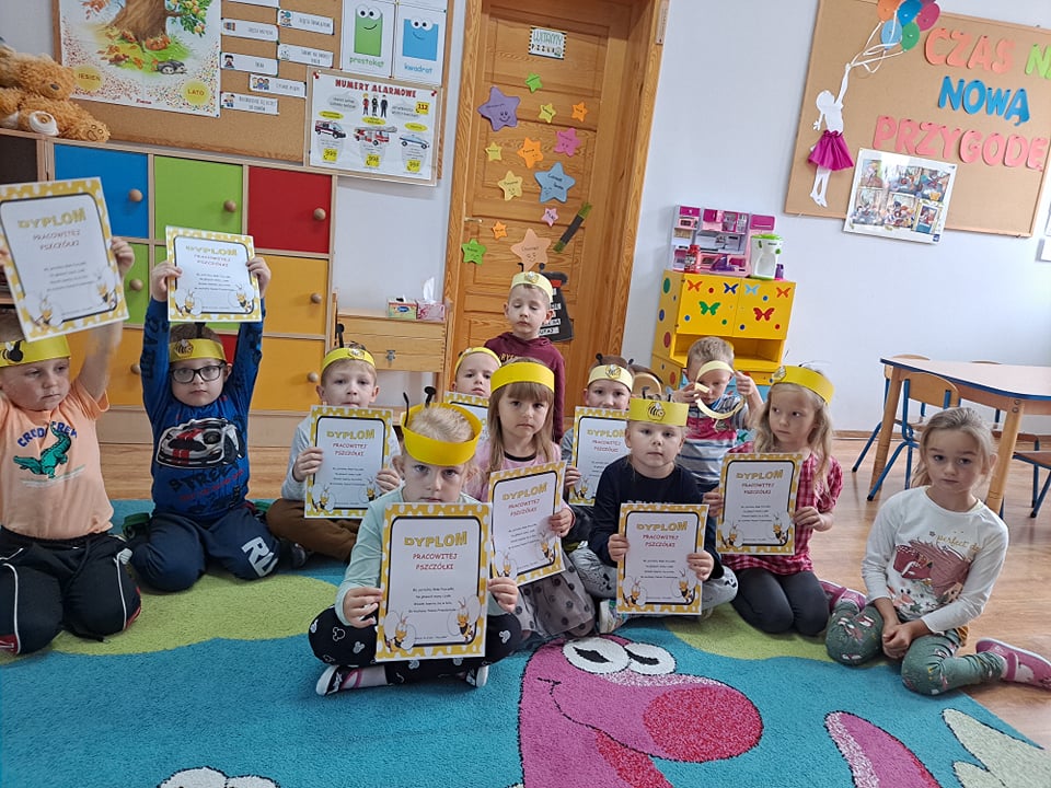 Z tej okazji było bardzo wiele zabawy, ale również jak na pszczółki przystało dużo pracy. Każde dziecko w tym dniu otrzymało pamiątkowy dyplom " Pracowitej Pszczółki"