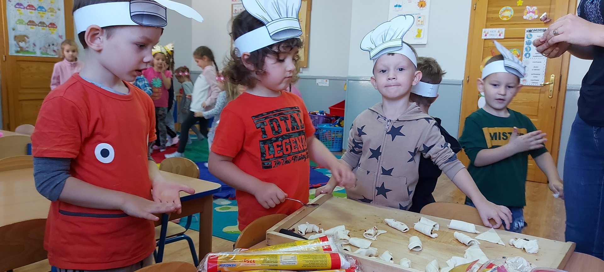 ,,Dzień Dziewczynek" - jeszcze mało popularne święto w Polsce - zostało ustanowione w 2011 r. przez Zgromadzenie Narodowe ONZ. W tym dniu na nasze wyjątkowe dziewczynki w każdej grupie czekało moc atrakcji. Każda przedszkolanka otrzymała prezent od kolegów z grupy, którzy składali im również życzenia, śpiewali piosenkę, zaprosili do wspólnej zabawy przy muzyce. Nasi młodzi dżentelmeni popisali się także umiejętnościami kulinarnymi, przygotowując dla dziewczynek przepyszne rogaliki z ciasta francuskiego. To był wyjątkowo miły dzień pełen niespodzianek dla wszystkich naszych przedszkolaków