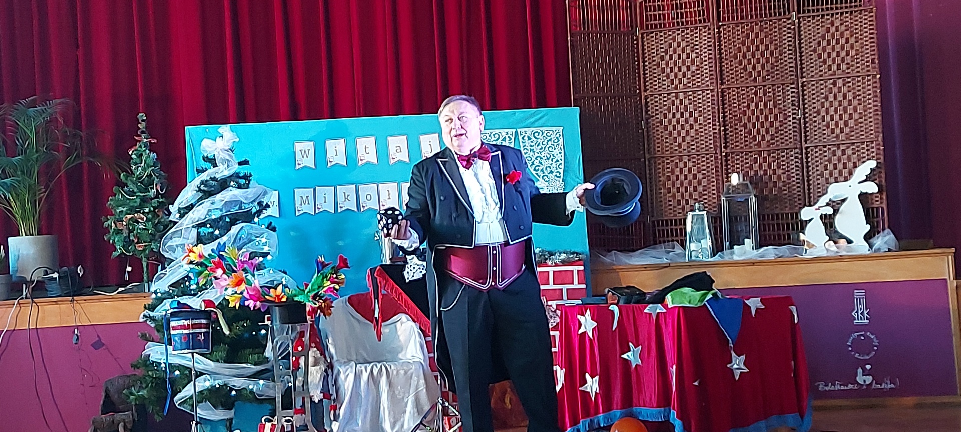 Dzień 3 grudnia był dla naszych przedszkolaków niezwykłym przeżyciem, nie tylko z powodu odwiedzin Mikołaja z elfem lecz z powodu przybycia do nas iluzjonisty, który czarował i pokazywał niezwykłe magiczne sztuczki.Występ i spotkanie z Mikołajem minęło w bardzo miłej atmosferze i przyniosło dzieciom wiele radości. Św. Mikołaj obdarował wszystkie dzieci prezentami. Cieszymy się, że Św. Mikołaj o nas pamiętał i czekamy na jego wizytę w przyszłym roku.