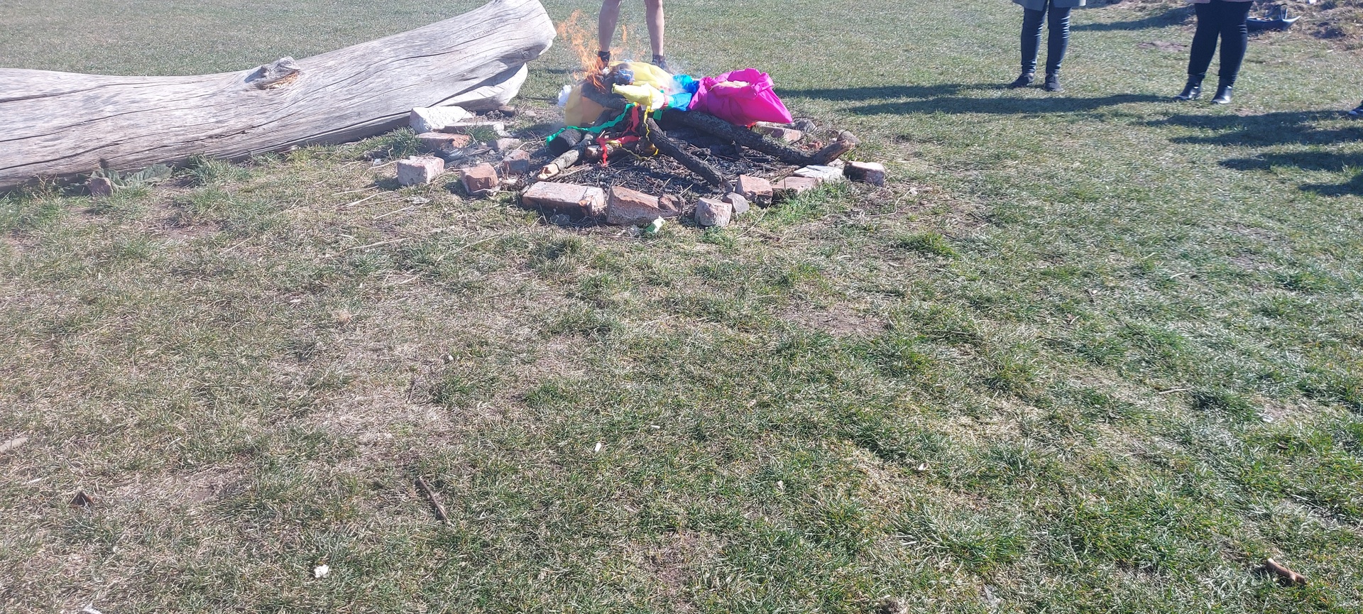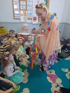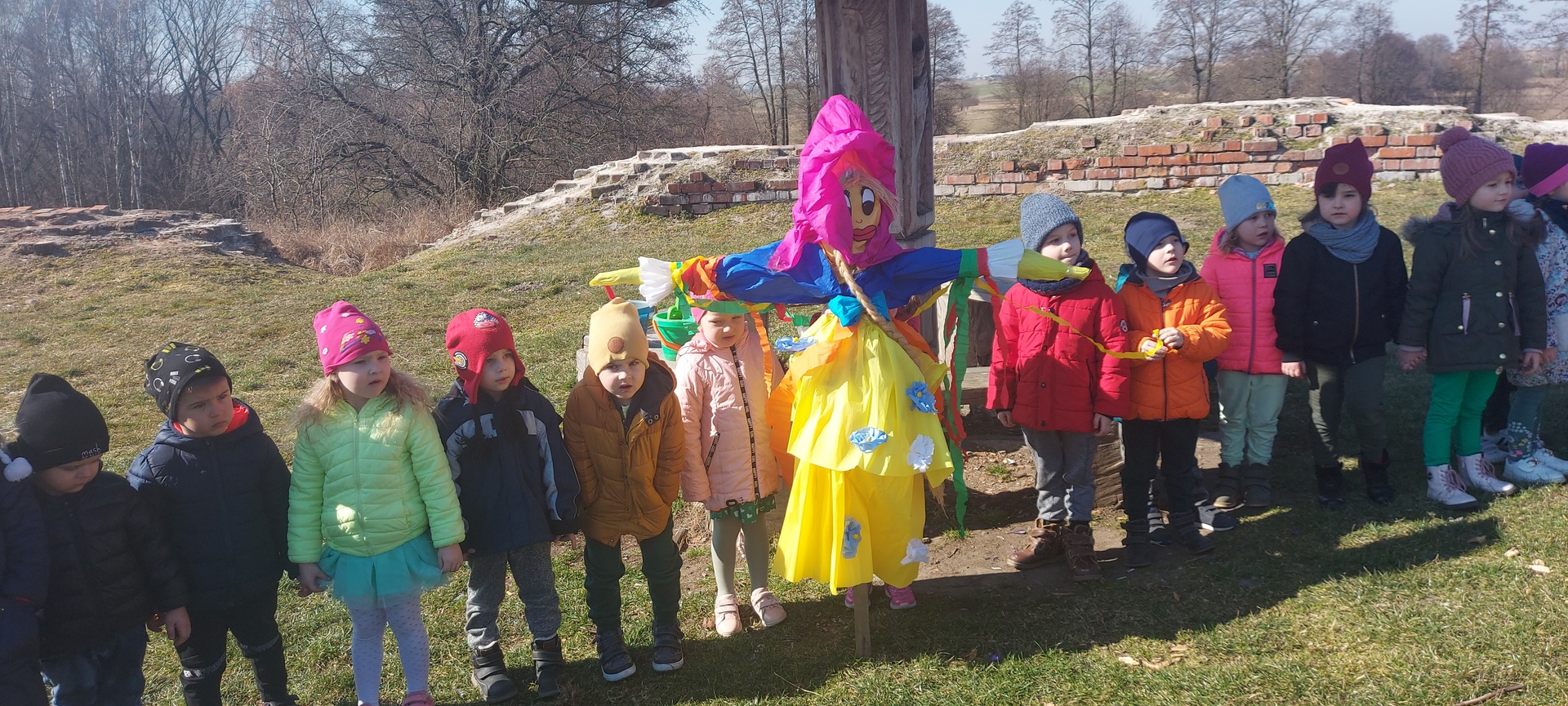 Takim wierszykiem grupa Motylki przywitała Panią Wiosnę. Całe przedszkole szukało oznak wiosny i rozwiązywało przy tym zagadki, a także na znak końca zimy spaliliśmy marzanne.