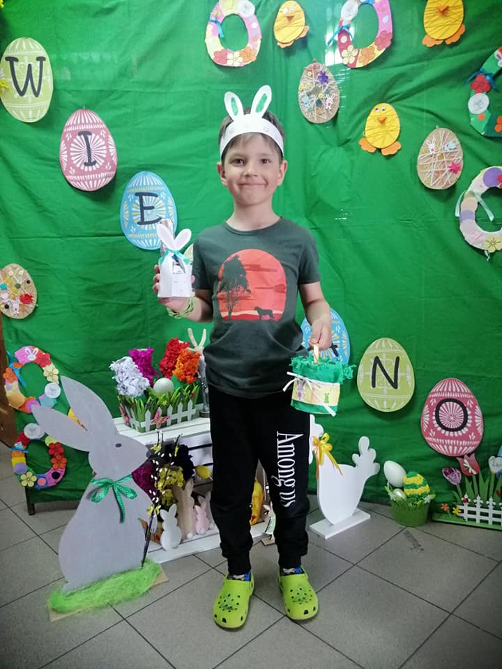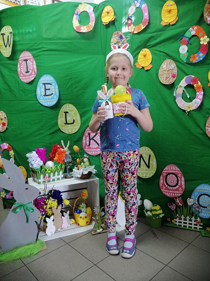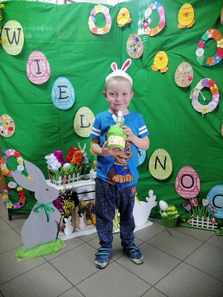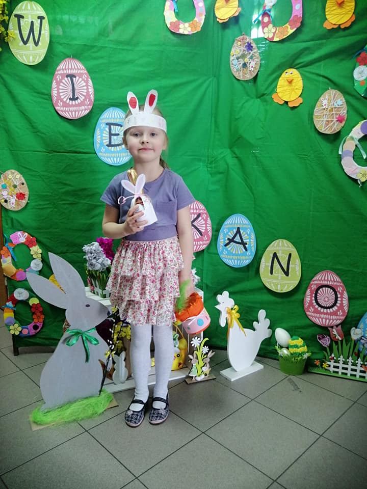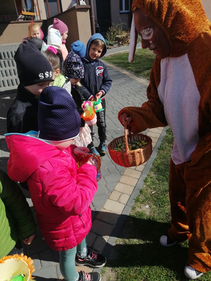 Miał w nagrodę słodki poczęstunek i jajko śmingusówkę. To jednak nie był koniec atrakcji, ponieważ ukrył w przedszkolnym ogrodzie kolejne słodkie niespodzianki, które dzieci, otrzymały za wcześniejsze poprawne wykonanie zadania