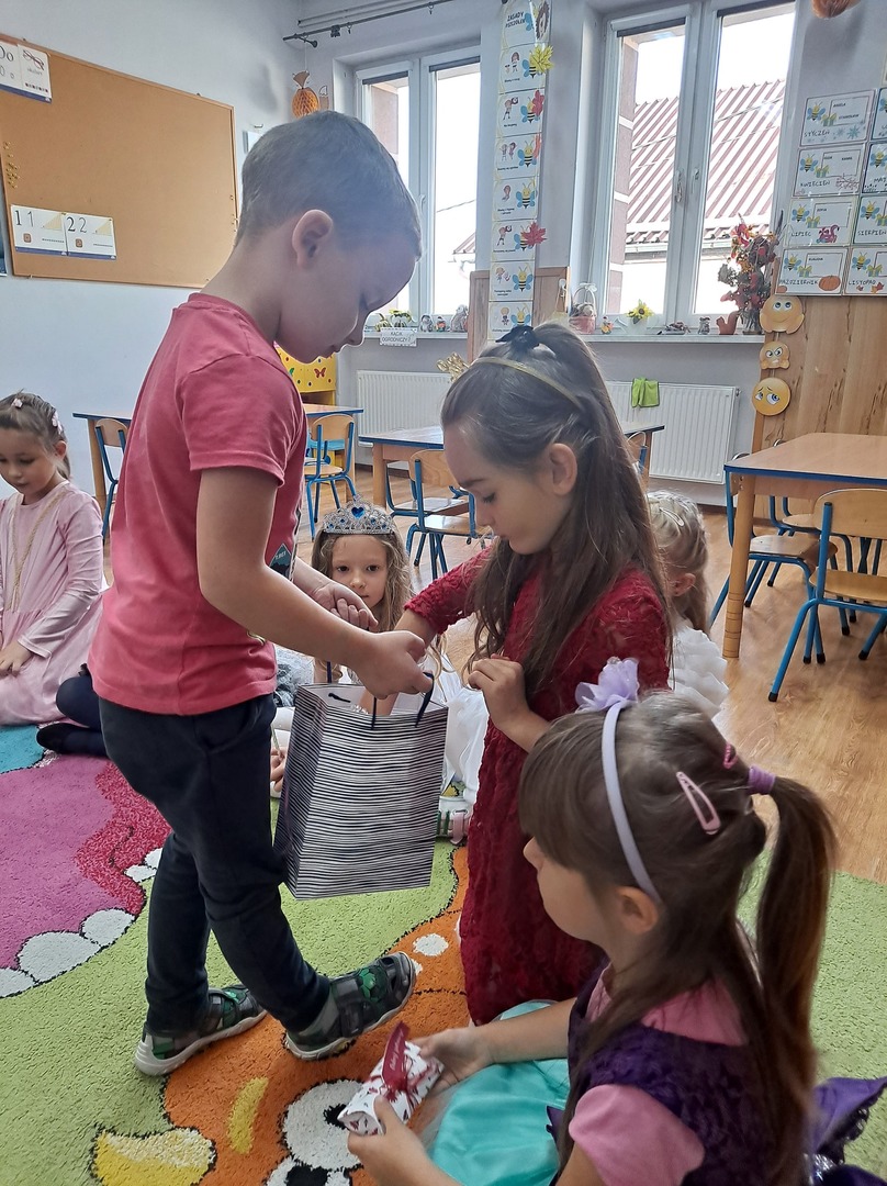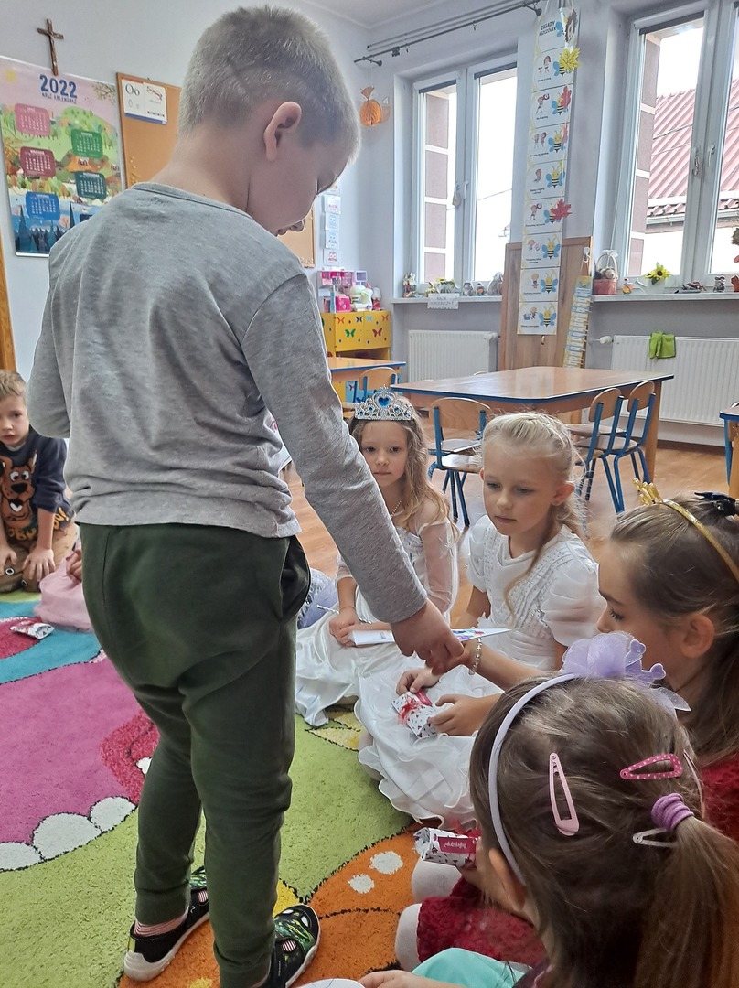 W naszym przedszkolu szczególny Dzień Dziewczynek uczciliśmy we wtorek 11 października. W tym wyjątkowym dniu nie zabrakło niespodzianek, upominków oraz wspaniałej zabawy. Każda dziewczynka otrzymała prezent oraz medal z napisem: „Mała Księżniczka” . Chłopcy składali dziewczynkom życzenia. Dużo emocji i radości dostarczyły dzieciom zabawy, które miały na celu zdobycie korony księżniczki. Dziewczynki wykonywały określone zadania, szukały atrybutów księżniczki w grochu i makaronie, zaplatały warkocz Roszpunki, oraz przymierzały pantofelek, który zostawił Kopciuszek. Dzień dziewczynek dostarczył dzieciom dużo wrażeń, śmiechu i radości, a każda dziewczynka na pewno poczuła się wyjątkowo.