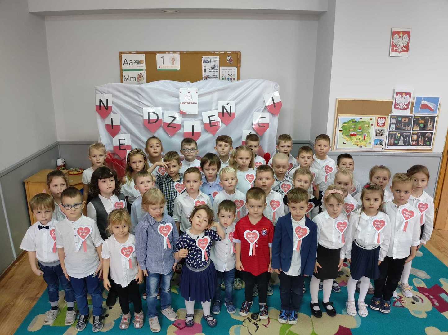 10 listopada przedszkolaki uroczyście odśpiewały hymn narodowy " Mazurek Dąbrowskiego".