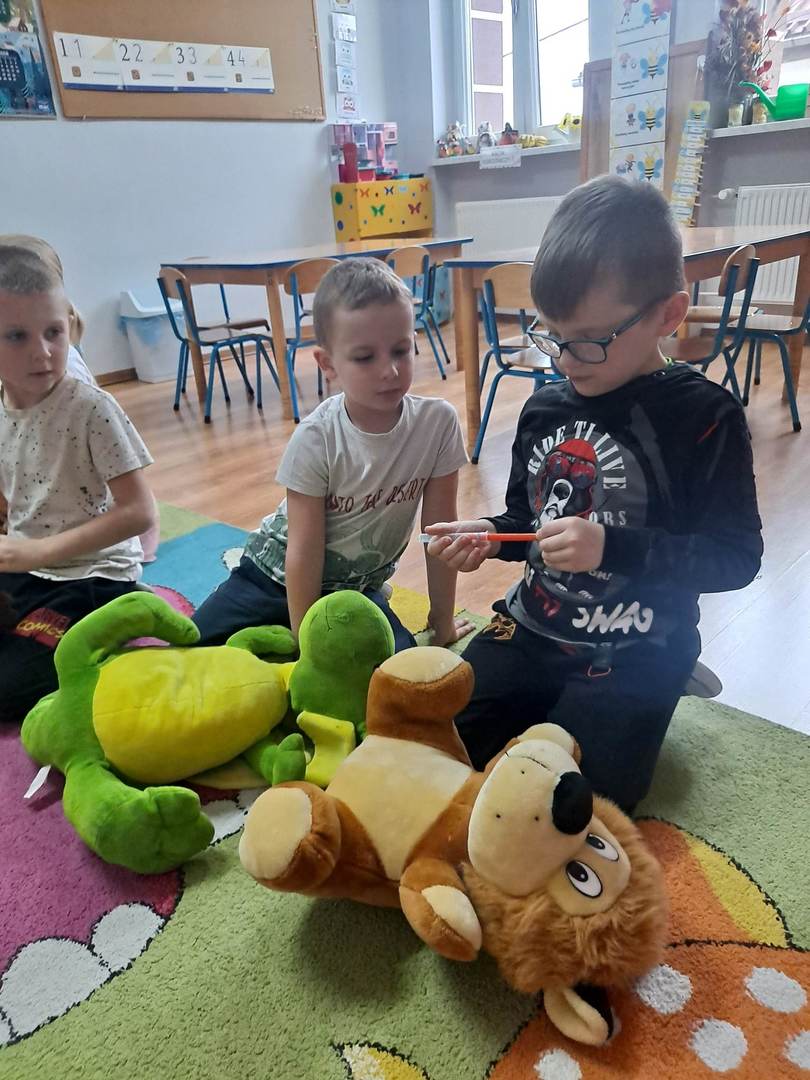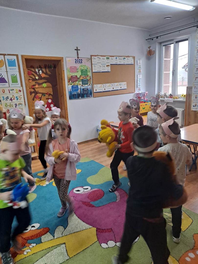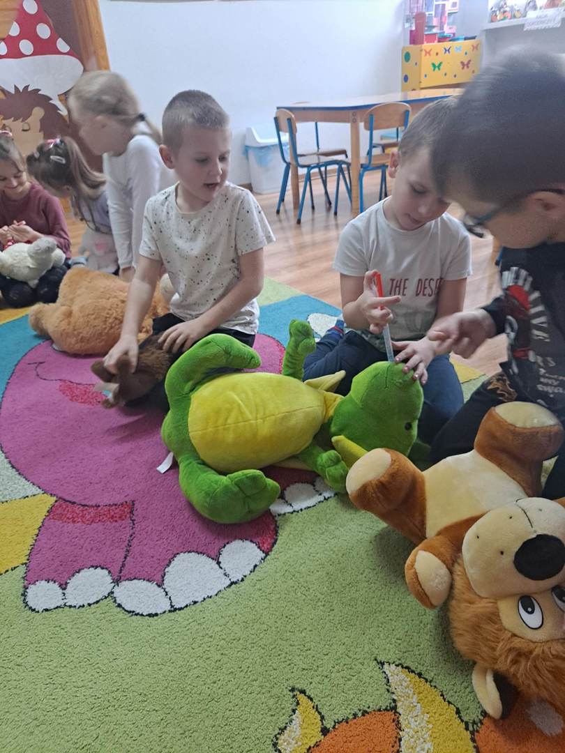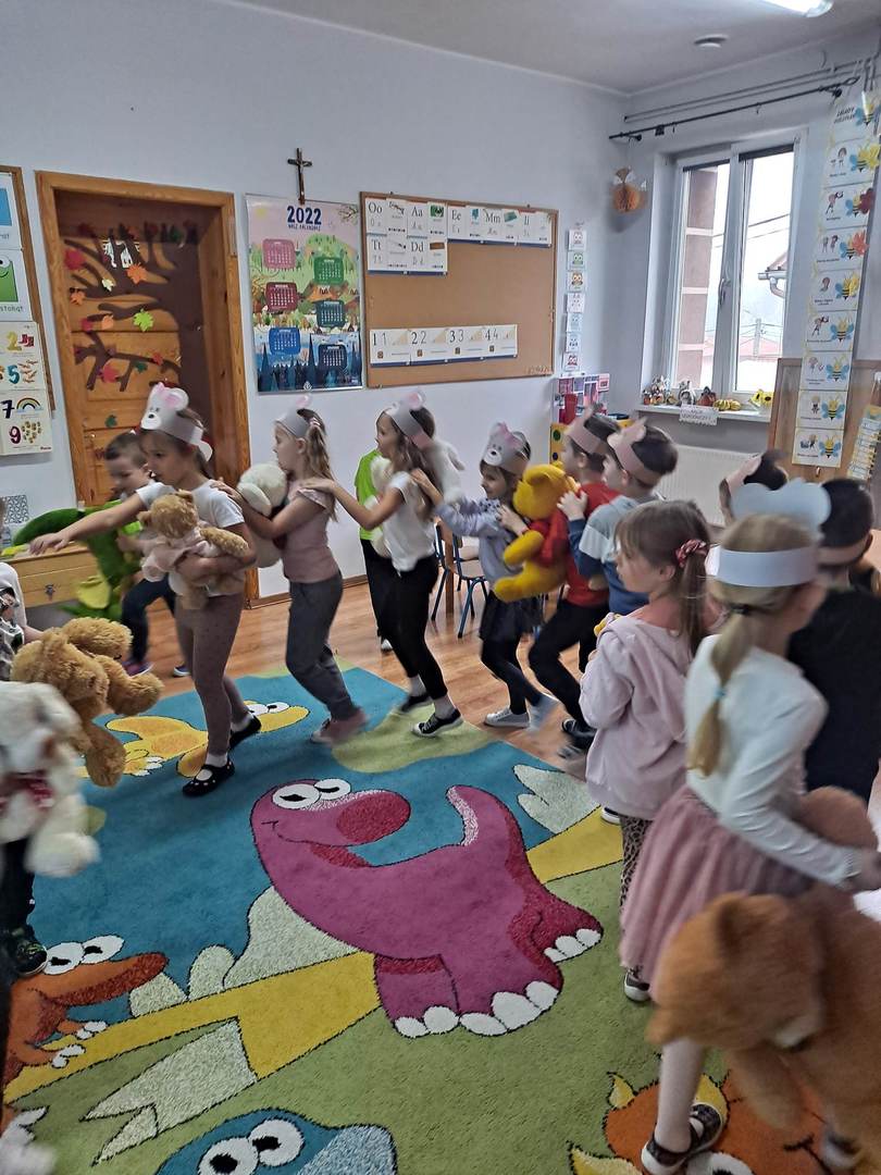 O święcie tej postaci nie zapomniały dzieci z naszego przedszkola. Każdy przedszkolak przyniósł swojego ukochanego pluszaka. Spotkały się misie małe, średnie i duże, brązowe, szare, czerwone, żółte i różowe, a każdy był kochany, uroczy i wyjątkowy. Dzieci poznały historię Święta Pluszowego Misia, wspólnie recytowały wiersze o misiach, oglądały bajki, bawiły się przy piosenkach: „Pluszowy Miś”, „Ja jestem niedźwiadek”, „Dwa malutkie misie", „Jadą, jadą misie", brały udział w zabawach ruchowych, quizach, zgadywankach, i wykonywały prace plastyczne. W grupie Pszczółki przedszkolaki udzielały pierwszej pomocy swoim Misiom.