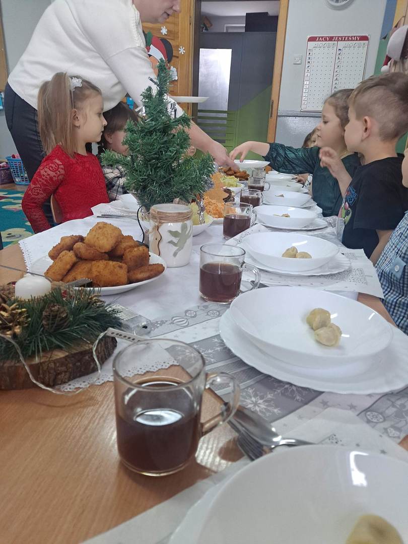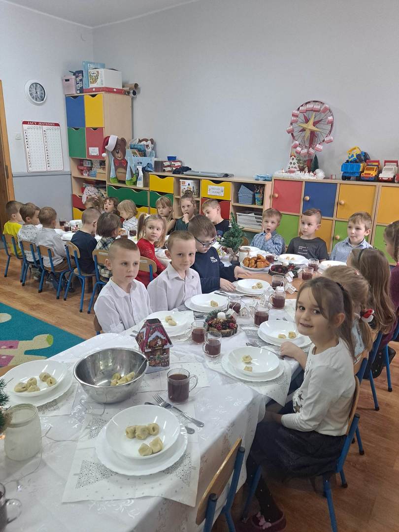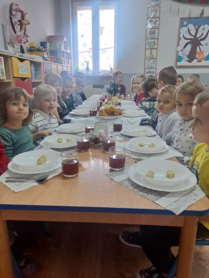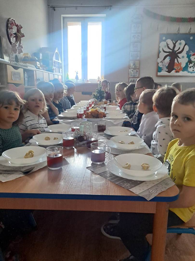 Czas oczekiwania na Święta Bożego Narodzenia w naszym przedszkolu zakończyła wspólną wigilią, która odbyła się 21 grudnia. Dzieci w tym dniu wspólne kolędowały, dzieliły się opłatkiem, składały sobie życzeń oraz zjadły wspólny wigilijny obiad. Oczywiście nie zabrakło prezentów pod lśniącą choinką.