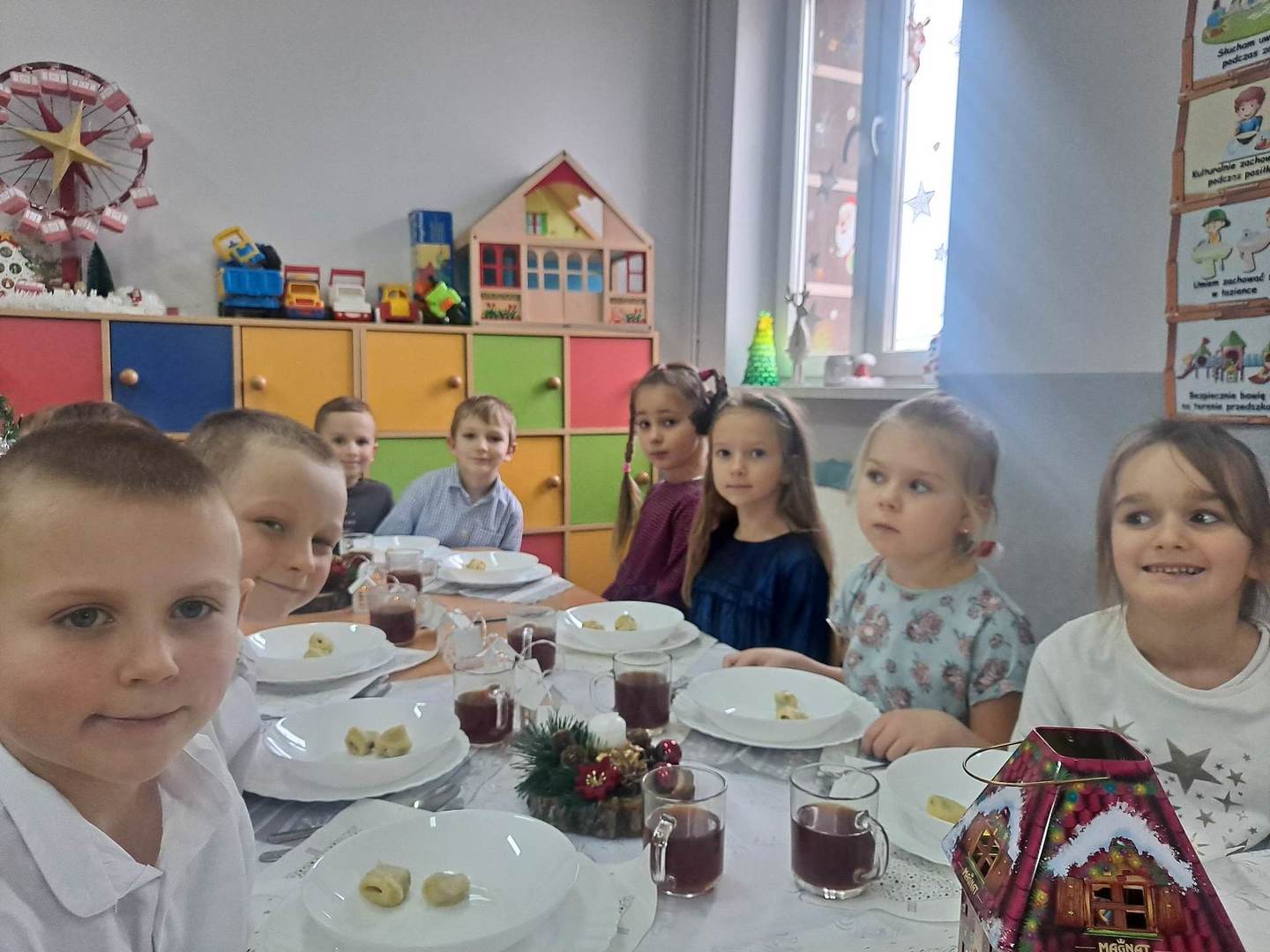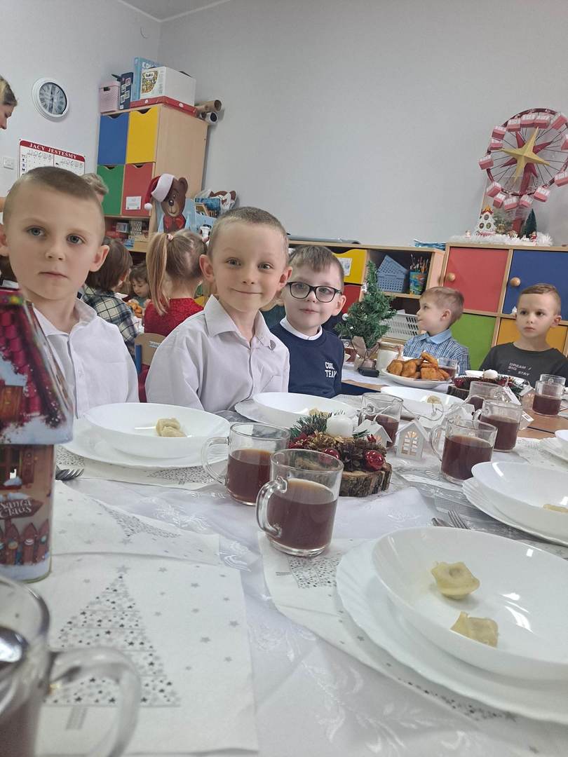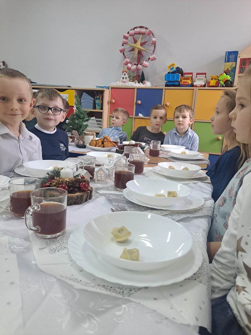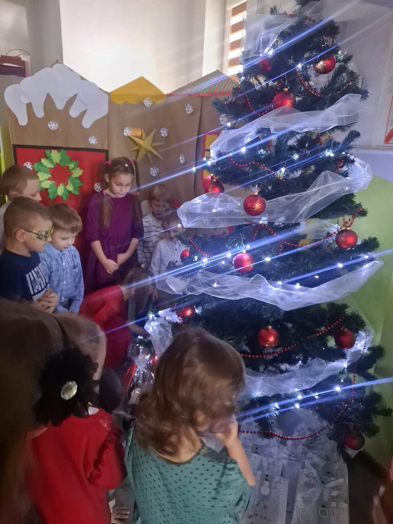 Czas oczekiwania na Święta Bożego Narodzenia w naszym przedszkolu zakończyła wspólną wigilią, która odbyła się 21 grudnia. Dzieci w tym dniu wspólne kolędowały, dzieliły się opłatkiem, składały sobie życzeń oraz zjadły wspólny wigilijny obiad. Oczywiście nie zabrakło prezentów pod lśniącą choinką.