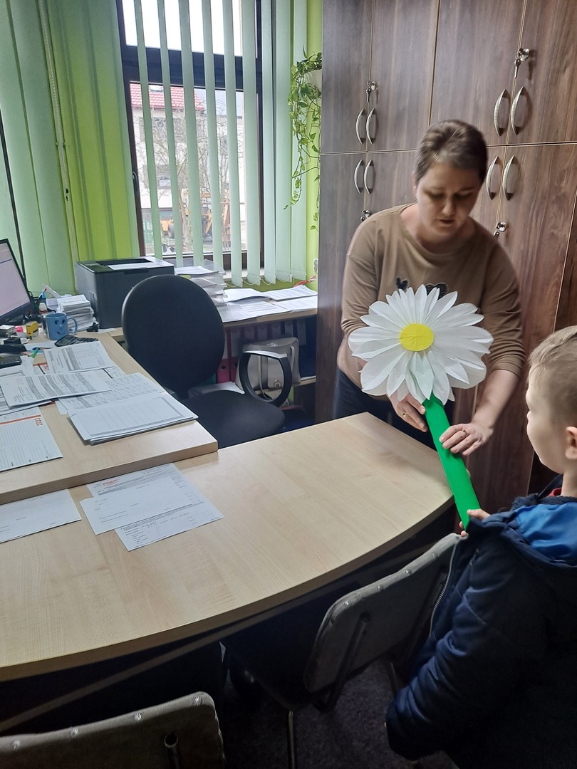 Wizyta przebiegła w miłej atmosferze. Przedszkolaki do Urzędu zabrały ze sobą piękne wiosenne kwiaty, którymi obdarowały pracowników .