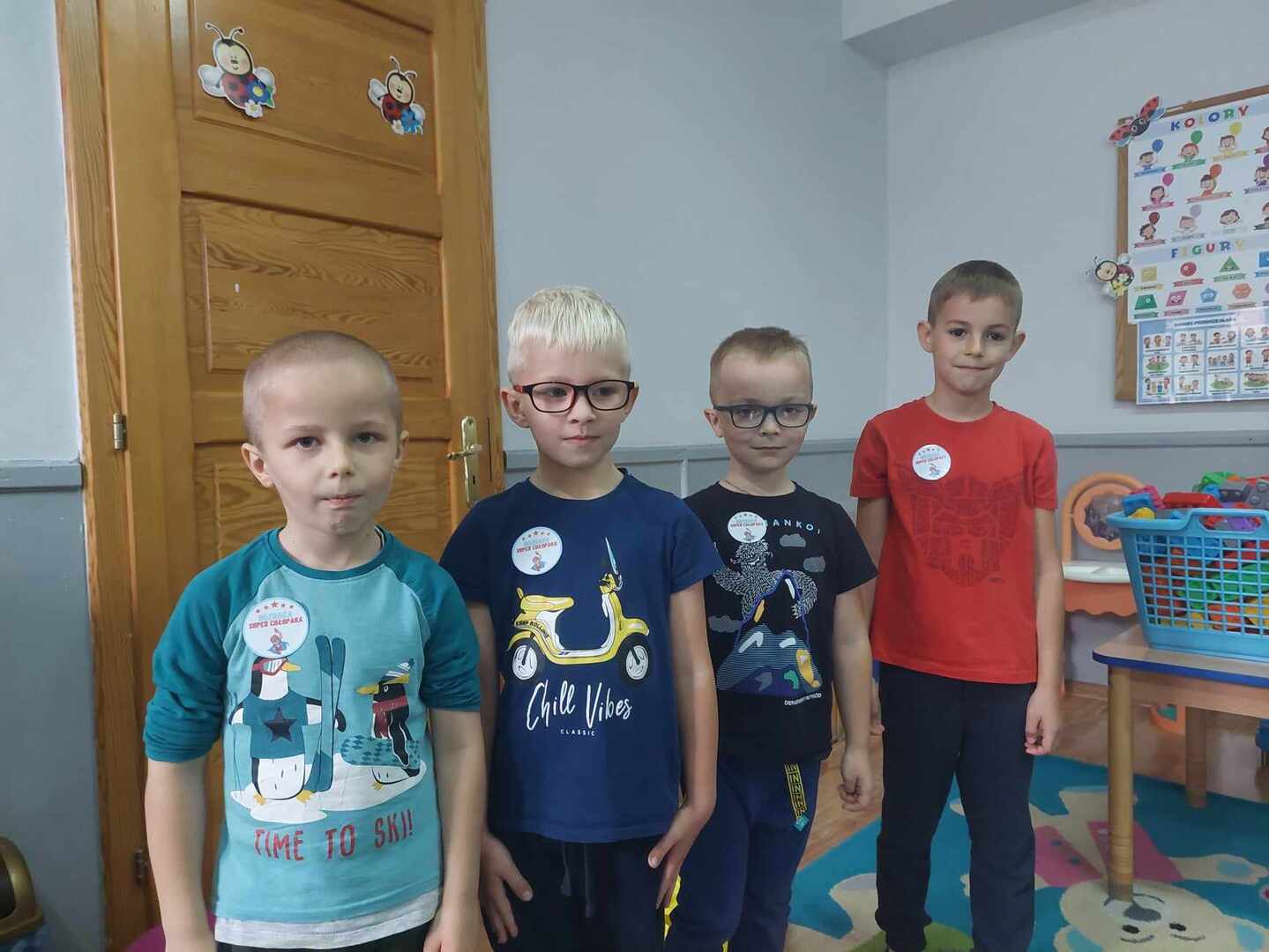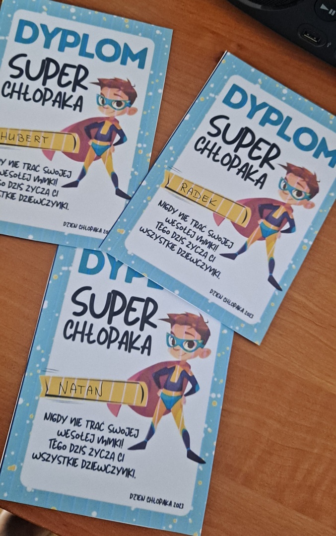 W poniedzialek 2 października świętowaliśmy w przedszkolu Dzień Chłopaka.Była to idealna okazja do tego aby poznać się jeszcze bliżej.Wiemy ,że każdy z nas jest wyjątkowy,a chłopcy w naszym przedszkolu mają super moce:moc równowagi,moc uśmiechu,moc szybkości i zwinności moc siły ... Każdy chłopak miał okazję zdobyć odznakę supermocy. Oprócz tych wyjątkowych zdolności potrafią też wyostrzać zmysły i nawet najtrudniejsze zagadki były dla nich "bułka z masłem". W tym dniu czekała na dzieci niespodzianka słodko-owocowa oraz magiczny napój. Były również prezenty od rodziców. Życzymy im, aby zawsze byli tak odważni, uśmiechnięci i niepowtarzalni.