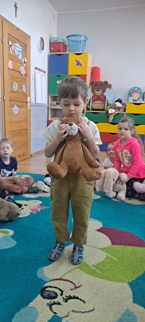 Przedszkolaki zostały zaproszone do wspólnej zabawy w misiowej krainie. Poznały historię święta, wspólnie recytowały wiersze o misiach, bawiły się przy piosenkach: „Dwa malutkie misie”, ‘Jadą, jadą misie”. Dla dzieci tego dnia przygotowano wiele atrakcji: zabawy ruchowe i plastyczne, zgadywanki, , śpiewanie piosenek, misiowe tańce . Na koniec zabawy dzieci złożyły przysięgę, że zawsze będą szanowały swoje misie. Ten dzień w przedszkolu pełen był uśmiechu oraz wspólnej zabawy.