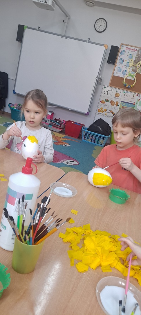 We wtorek i środę (19-20.03.) odbyły się w naszym przedszkolu warsztaty wielkanocne. Początkowe założenie było, że będą to zajęcia otwarte dla rodziców. Niestety znikoma ilość chętnych osób spowodowała, że warsztaty musiały odbyć się w zmienionej formie.