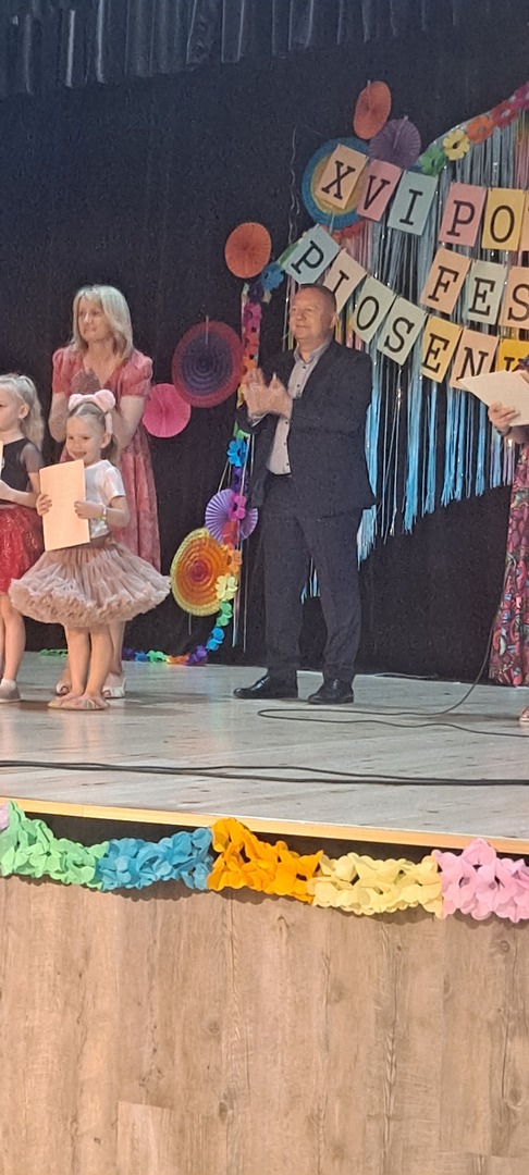 27 czerwca dziewczynki Izabela Lis, Antonina Choczaj Kornelia Chałupka i Zosia Kostrzewa reprezentowały Nasze Przedszkole podczas XVI Powiatowego Konkursu Piosenki z Bajki, który zorganizowany był przez Powiatową Bibliotekę w Wieruszowie oraz WDK Wieruszów.