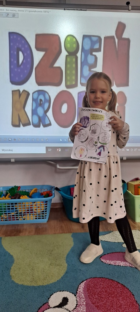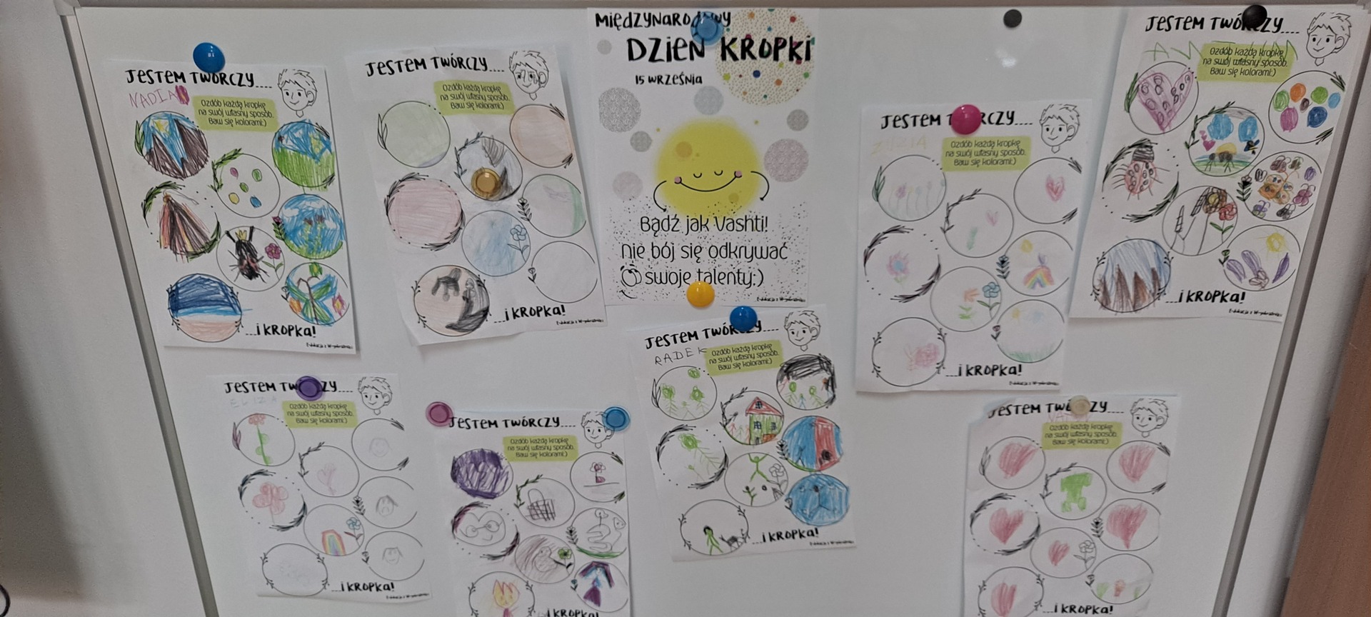 We wrześniu, dokładnie 15 września obchodzony jest Międzynarodowy Dzień Kropki, czyli dzień, w którym promujemy wytrwałość, kreatywność, odwagę w pokonywaniu swoich obaw i rozwój talentów. W tym roku to wyjątkowe święto w przedszkolu obchodzono 16 września w poniedziałek.