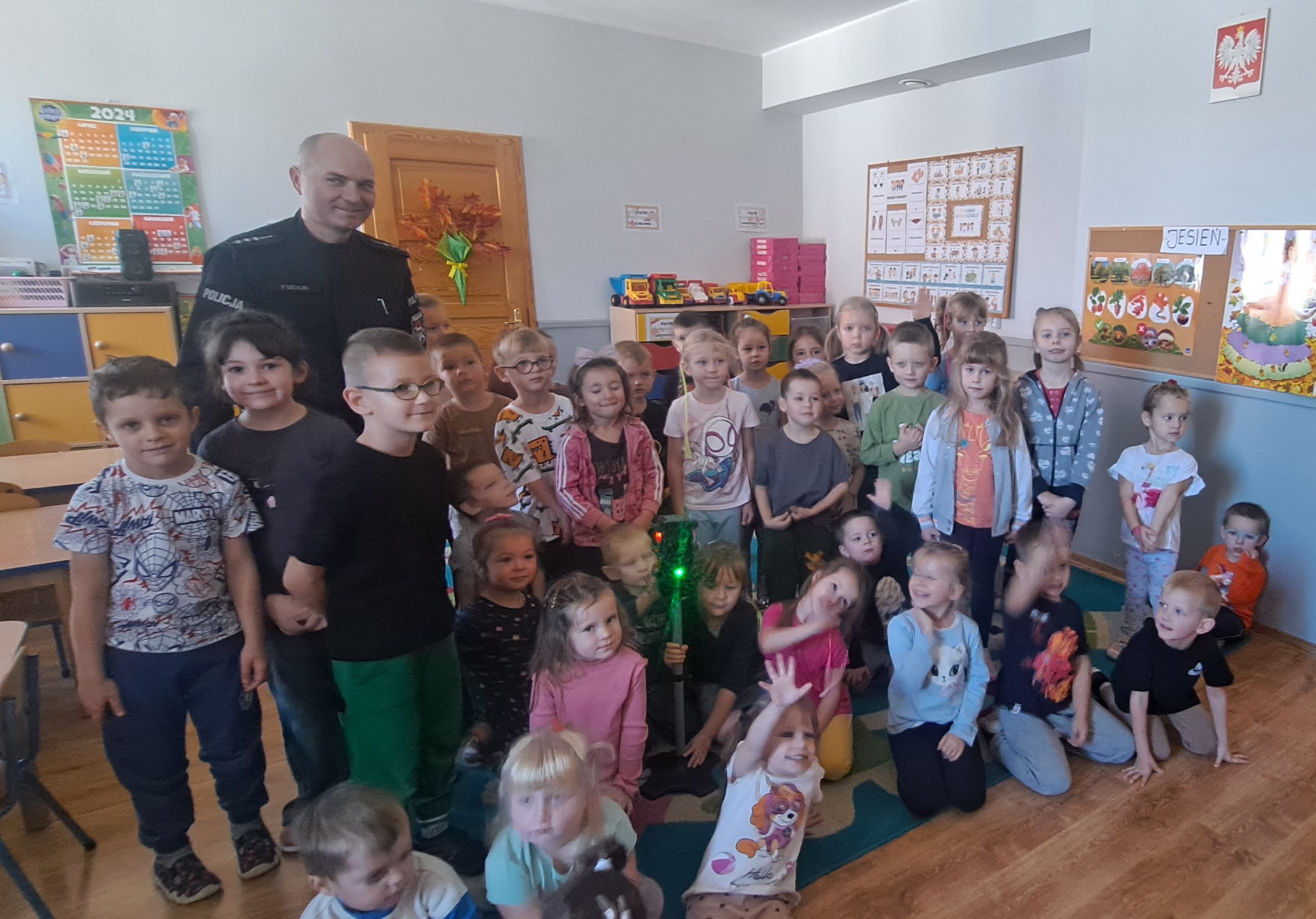W ramach tematu,, Bezpieczna droga do przedszkola". W dniu 16 października odwiedził Nasze Przedszkole Policjant.