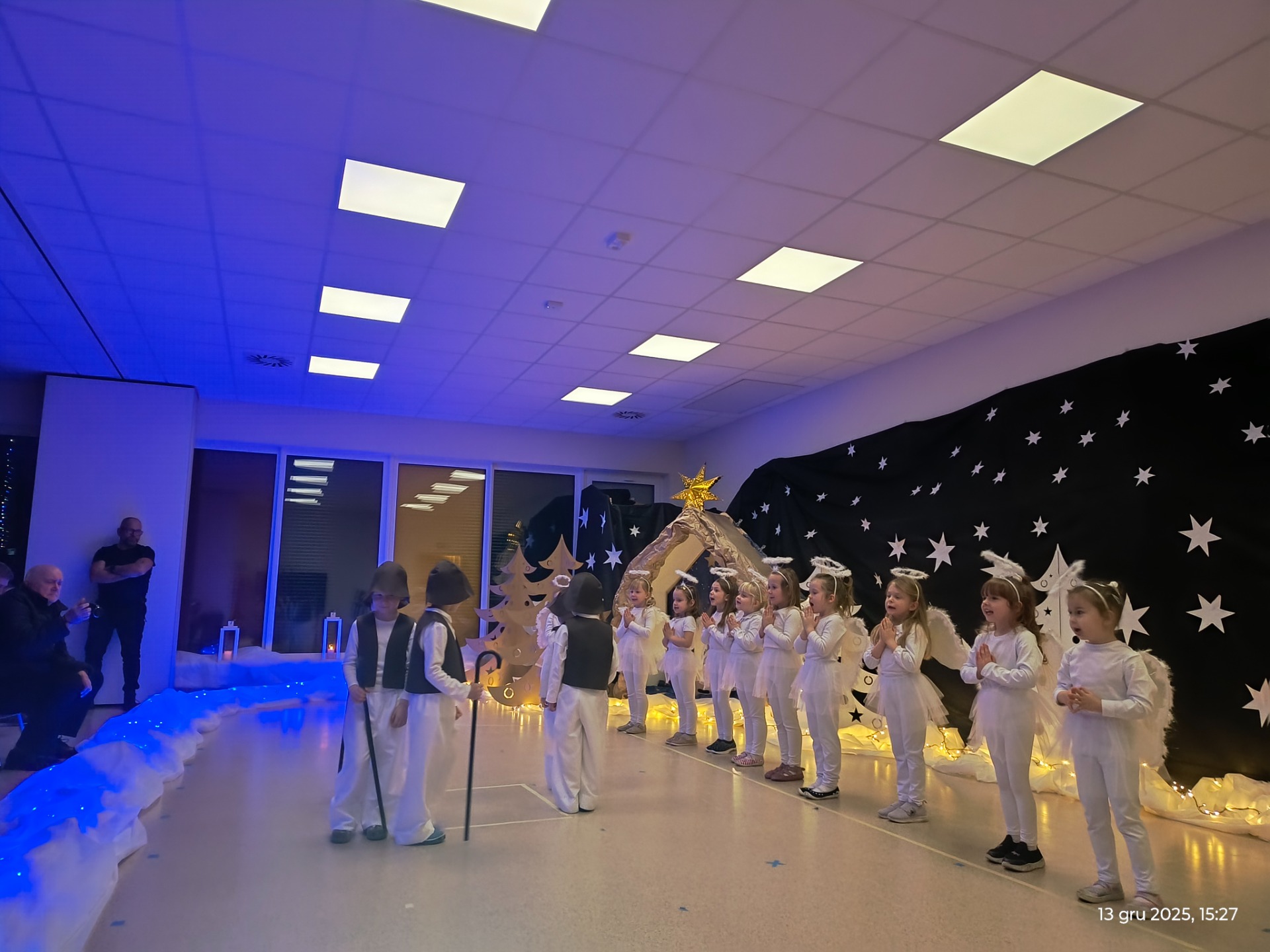 Dzieci z poszczególnych grup wystąpiły przed zgromadzoną publicznością, śpiewając kolędy oraz wesołe pastorałki. Każdy występ był starannie przygotowany, a mali wykonawcy zachwycili widzów pięknymi strojami, uśmiechami i odwagą sceniczną. Występom towarzyszyły instrumenty muzyczne oraz układy ruchowe, które dodatkowo uatrakcyjniły koncert.