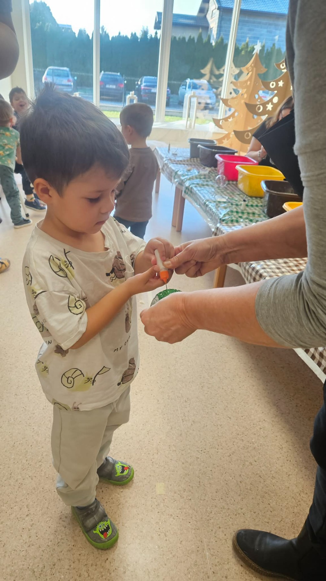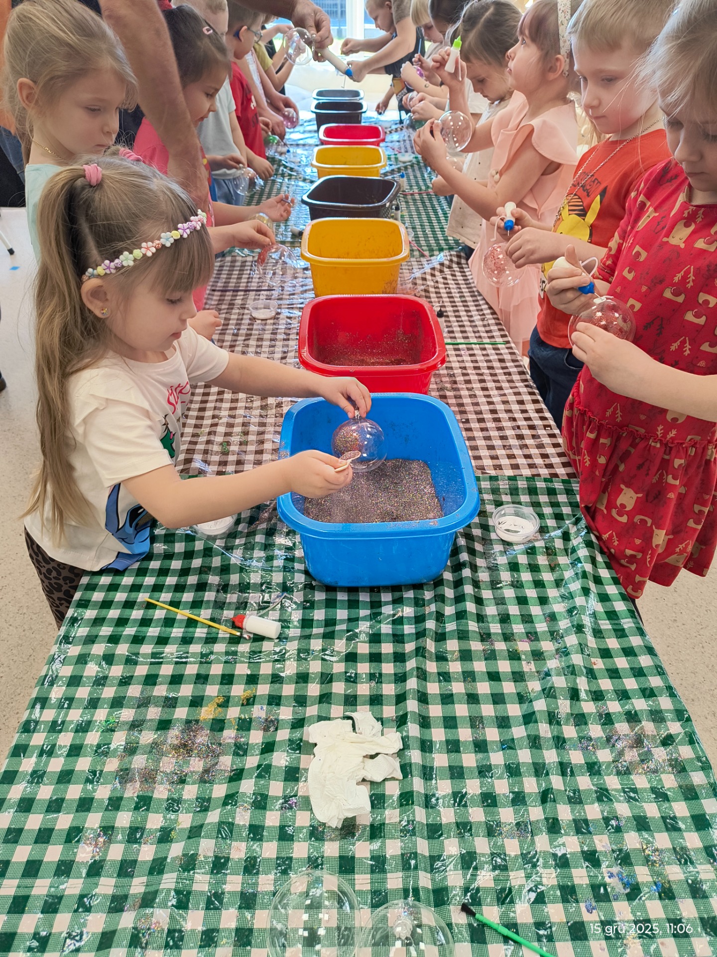 W naszym przedszkolu zapanowała prawdziwie świąteczna atmosfera. Wszystko za sprawą warsztatów zdobienia bombek, które odbyły się w minionych dniach. Było to wyjątkowe wydarzenie, pełne radości, kreatywności i bożonarodzeniowej magii.